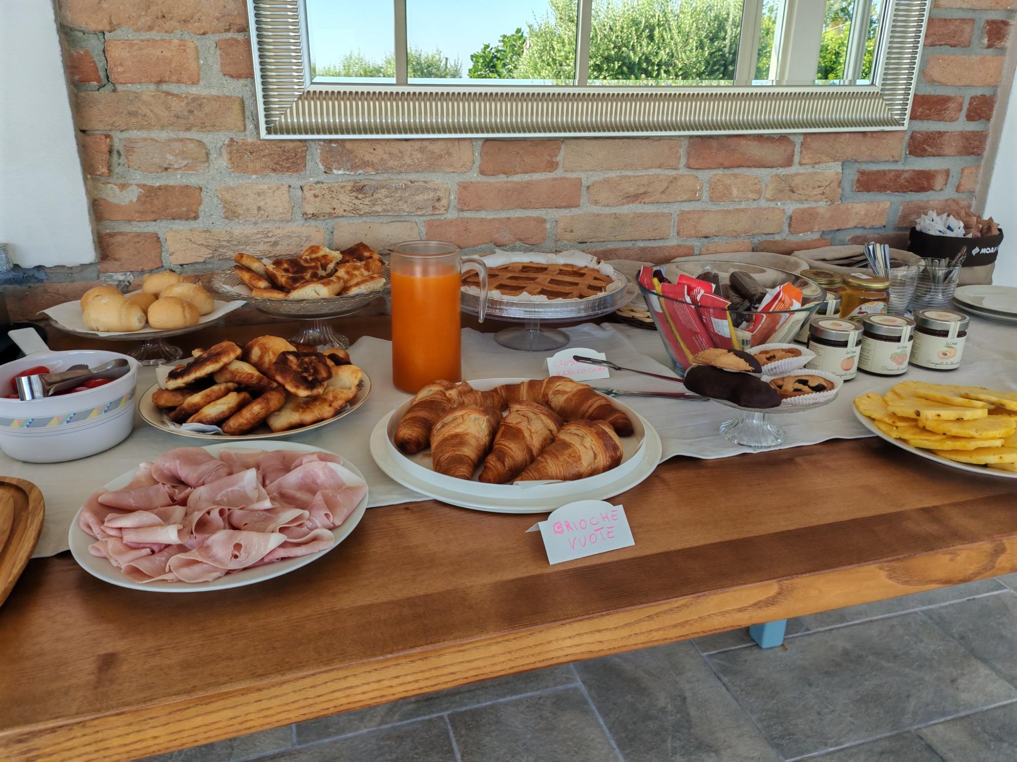 La colazione è un momento speciale, pensato per farvi iniziare la giornata con gusto e autenticità. Ogni mattina viene servita una selezione di prodotti freschi e locali, preparati con cura e attenzione alla qualità delle materie prime. Pane e dolci fatti in casa, marmellate artigianali, formaggi e salumi del territorio si affiancano a frutta fresca di stagione e a un’ampia scelta di bevande calde. Un risveglio genuino, che racconta i sapori del Monferrato e celebra la tradizione gastronomica piemontese in un’atmosfera rilassata e accogliente.