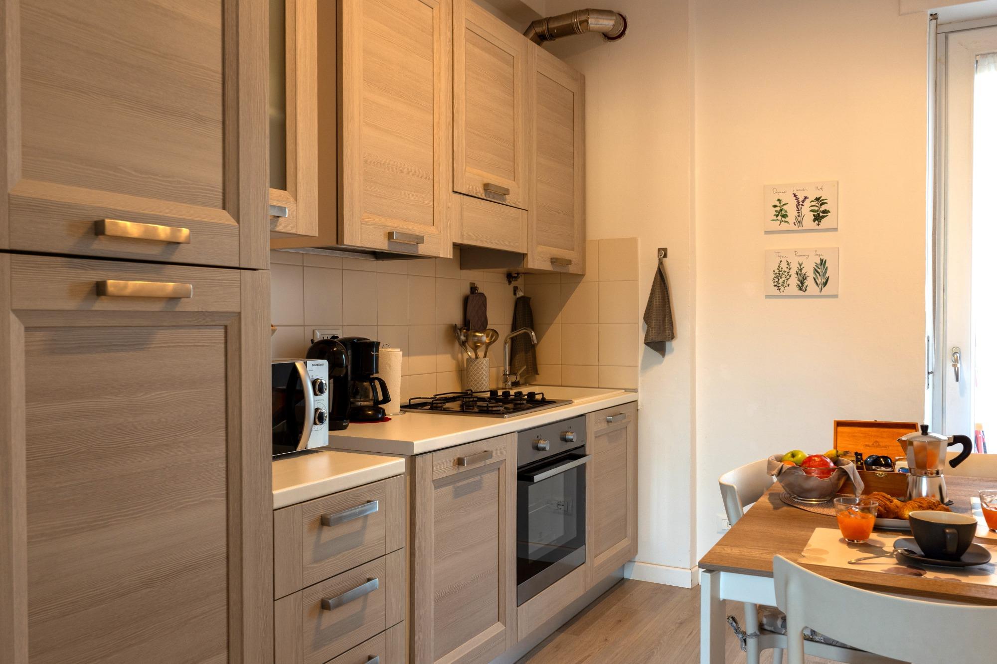 Per legge non possiamo fornire la colazione, ma mettiamo a disposizione degli ospiti tutto il necessario per poterla preparare comodamente a casa. Nelle immediate vicinanze, a meno di 5 minuti a piedi, si trovano una caffetteria ed una pasticceria, nonchè un supermercato aperto anche la domenica.